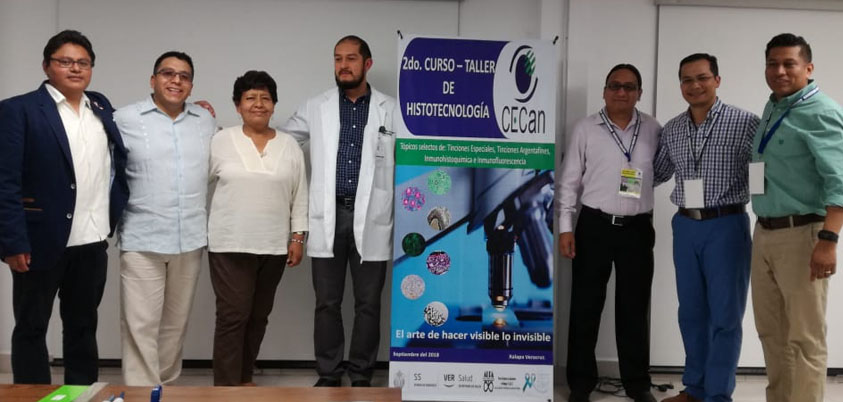 Gracias a la participación de todos los colaboradores que hicieron posible el éxito; en esta reunión se trataron temas de importancia para la práctica y los avances que día a día enriquecen nuestra especialidad. El uso de diferentes técnicas histológicas, la inmunohistoquimica e Inmunofluorescencia han cambiado los paradigmas en el diagnóstico histopatológico que trae enormes beneficios a los pacientes que diariamente tenemos en nuestras manos. En el marco de nuestro curso, reconocimos el trabajo de dos grandes profesionistas de la Histotecnología en nuestro país; Dra. Guadalupe Melo Santiesteban Directora del Instituto de Medicina Forense de la Universidad Veracruzana y la Ht. Elodia Sida Martínez maestra del Instituto Nacional de Pediatría de la Ciudad de México.
