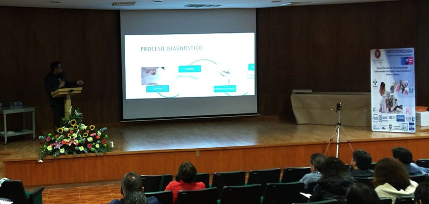 Agradecemos la participación de todos los asistentes al curso, así como de las instituciones y colaboradores que ofrecieron todo el apoyo para poder hacer de este curso; un éxito. Comprometidos con la mejora continua de nuestros procesos, así como de la actualización constante del gremio se realizó la demostración de cada una de las técnicas histoquímicas, Argénticas y de inmunohistoquímica utilizadas para el diagnóstico de Dermatopatología, patologías del hígado, cáncer cervicouterino y cáncer de mama. Así como microscopia electrónica, procesamiento de citología de diversos, y un caso retrospectivo de necrocirugía donde se utilizó histoquímica para llegar a un diagnóstico post - morten.